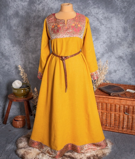 Byzantine linen dress with silk brocade