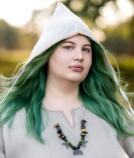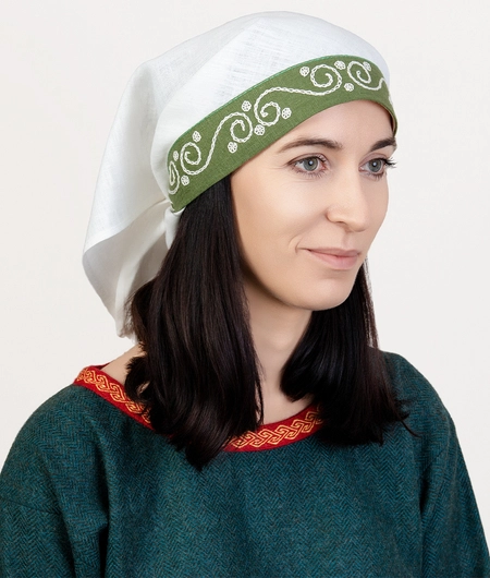 Hand-embroidered natural silk Slavic headband with bronze temple rings