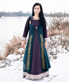 Scandinavian hand-embroidered wool open apron dress