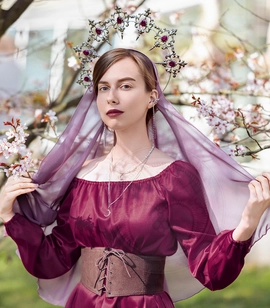 Buckle-adjustable waist bag with handmade seams and 100% wool trim in fantasy style