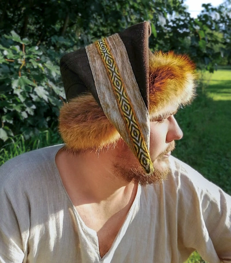 Wczesnośredniowieczna trójkątna czapka wełniana z naturalnym futrem