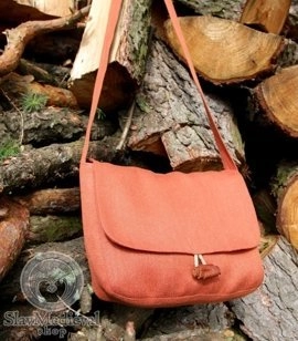 Wczesnośredniowieczna wełniana torba z lnianą podszewką i drewnianym uchwytem