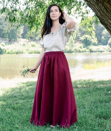 Lniana spódnica maxi z wysokim stanem i gumką w pasie