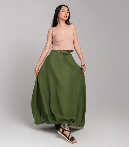 Lniana spódnica balloon z wysokim stanem