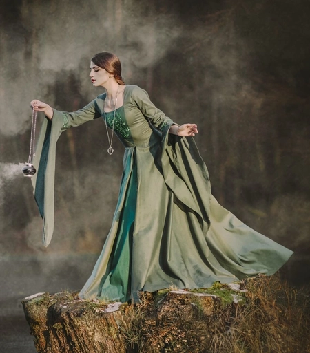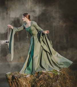 Elficka sukienka z weluru z poszerzanymi rękawami
