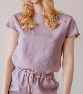 Minimalistyczny damski lniany szlafrok z paskiem i poszerzanymi rękawami