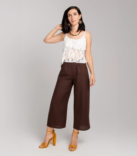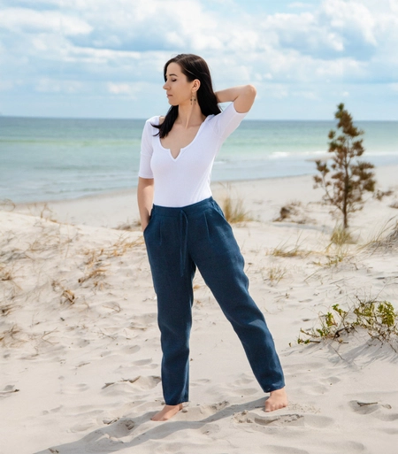 Proste lniane spodnie z gumką w pasie i kieszeniami
