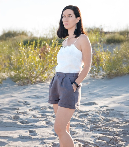 Lniana sukienka na ramiączkach z guzikami z przodu i wiązaniem z tyłu