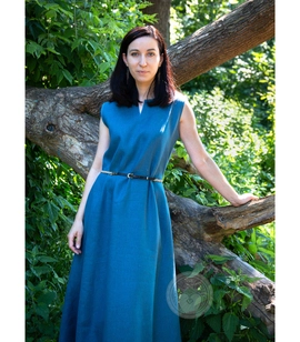 Prosta sukienka lniana z Birki bez rękawów z dwoma klinami i rozcięciem przy dekolcie