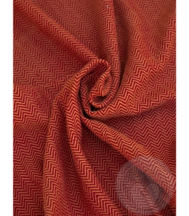 Czerwona tkanina wełniana ręcznie tkana z wzorem w jodełkę, gramatura 350 g/m²