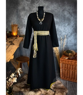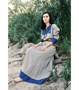 Wczesnośredniowieczna suknia lniana z lnianym wykończeniem dekoltu i rękawów