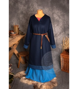 Wczesnośredniowieczny skandynawski otwarty wełniany damski kaftan z podszewką lnianą