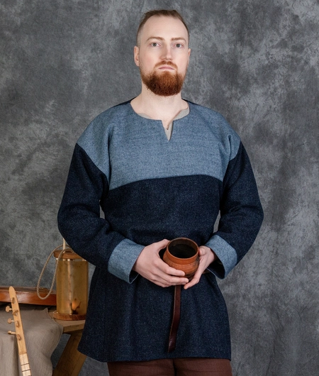 Tunika wełniana Hedeby z czterema klinami i wełnianymi obszyciami