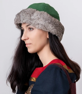 Okrągła wełniana czapka wikińska z Birki z naturalnym szarym futrem króliczym