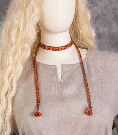 Ręcznie tkana wełniana krajka-naszyjnik z frędzlami do stylizacji ludowych
