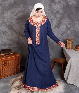 Wczesnośredniowieczna królewska wełniana suknia z ręcznie stemplowanym jedwabiem